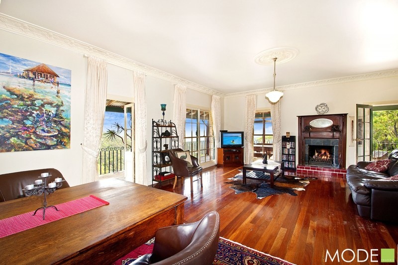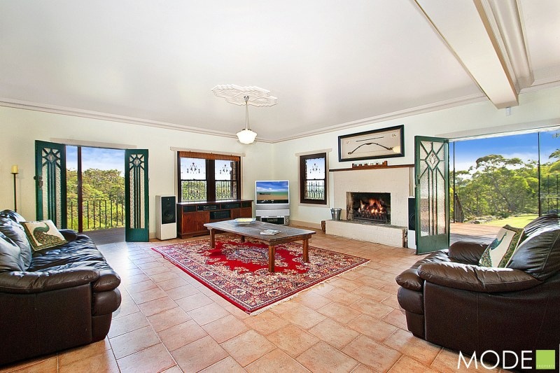 7 big bedrooms spread across all levels means this home could easily be utilised as 'single level' if required. Huge rumpus/games room, sun filled kitchen with adjoining family rooms that open through french doors onto the surrounding verandahs. Exposed timbers, vaulted ceilings, iron balustrades, open fireplaces (there's even a 140yr old Berowra Waters 1 penny row ferry used as a book shelf!) plus the most stunning distant views of the adjoining native bushland from most rooms.
