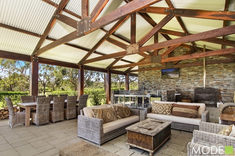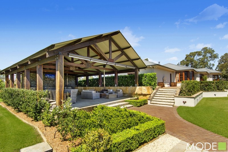 Once outside, the property continues to impress with one of the largest (almost commercial in scale and construction) entertaining pavilions we have seen! Substantial timber frames, the high vaulted roof which covers the entire area, full kitchen, bar, pizza oven, dining and lounge space plus bathroom all capture the far distant views. This is a place you could intimately dine or entertain on a huge scale.