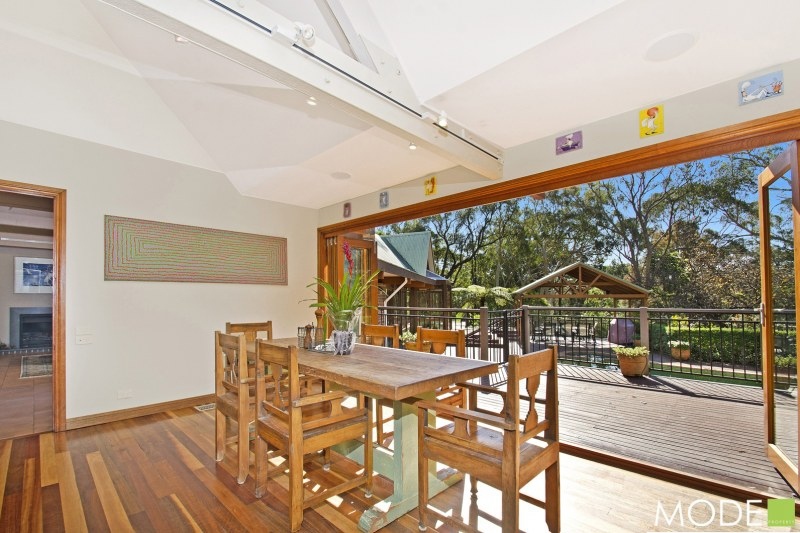 The sophisticated floor plan has multiple informal living areas that feature cathedral style ceilings adding to the feeling of space. There is a heavy emphasis on floor to ceiling windows and doors that maximises the inflow of natural light. The five bedrooms benefit from the thoughtful architectural design that ensures that the surrounding bush vistas are showcased throughout; the key living areas also enjoy the same peaceful outlook.