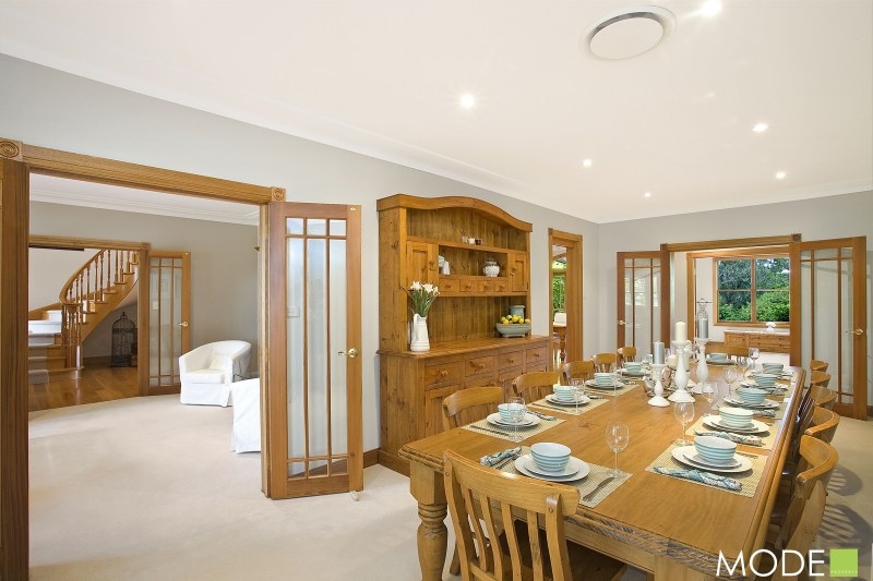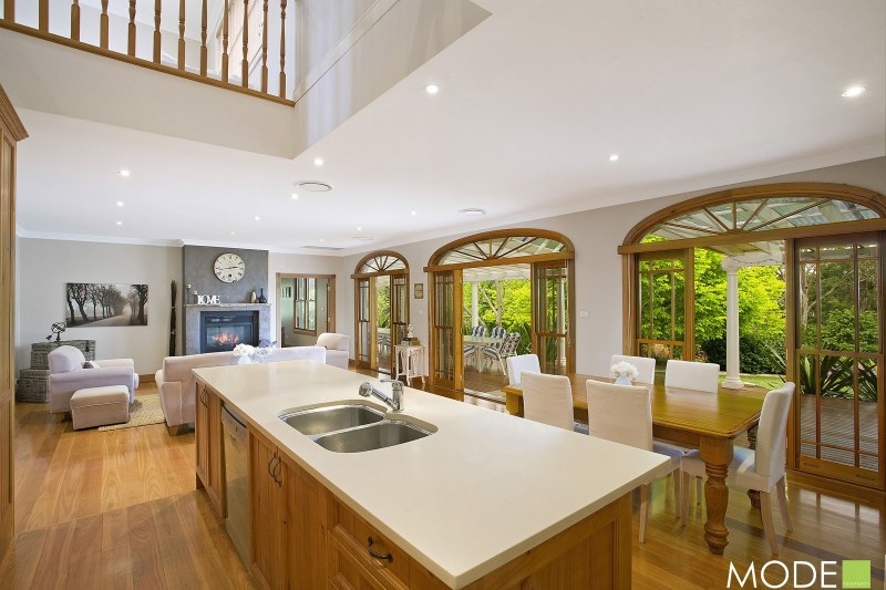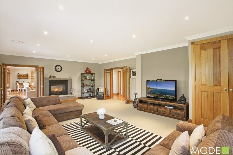 Entering the home you are greeted with a stunning open plan living space with casual dining area, spacious living room with double sided fireplace and gourmet kitchen with breakfast bar, rich timber cupboards and stone bench tops. Opening out through three sets of fine timber doors these informal areas open out to the grand all weather covered outside entertaining areas.