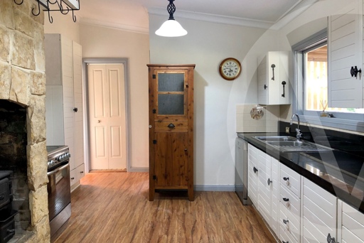 This beautiful renovated family home that features high ceilings, polished timber floors, wide hallway, stunning full height sandstone fireplace and a wide, shady verandah to the rear. .PLus bonus self contained free-standing home office/ separate accomodation.